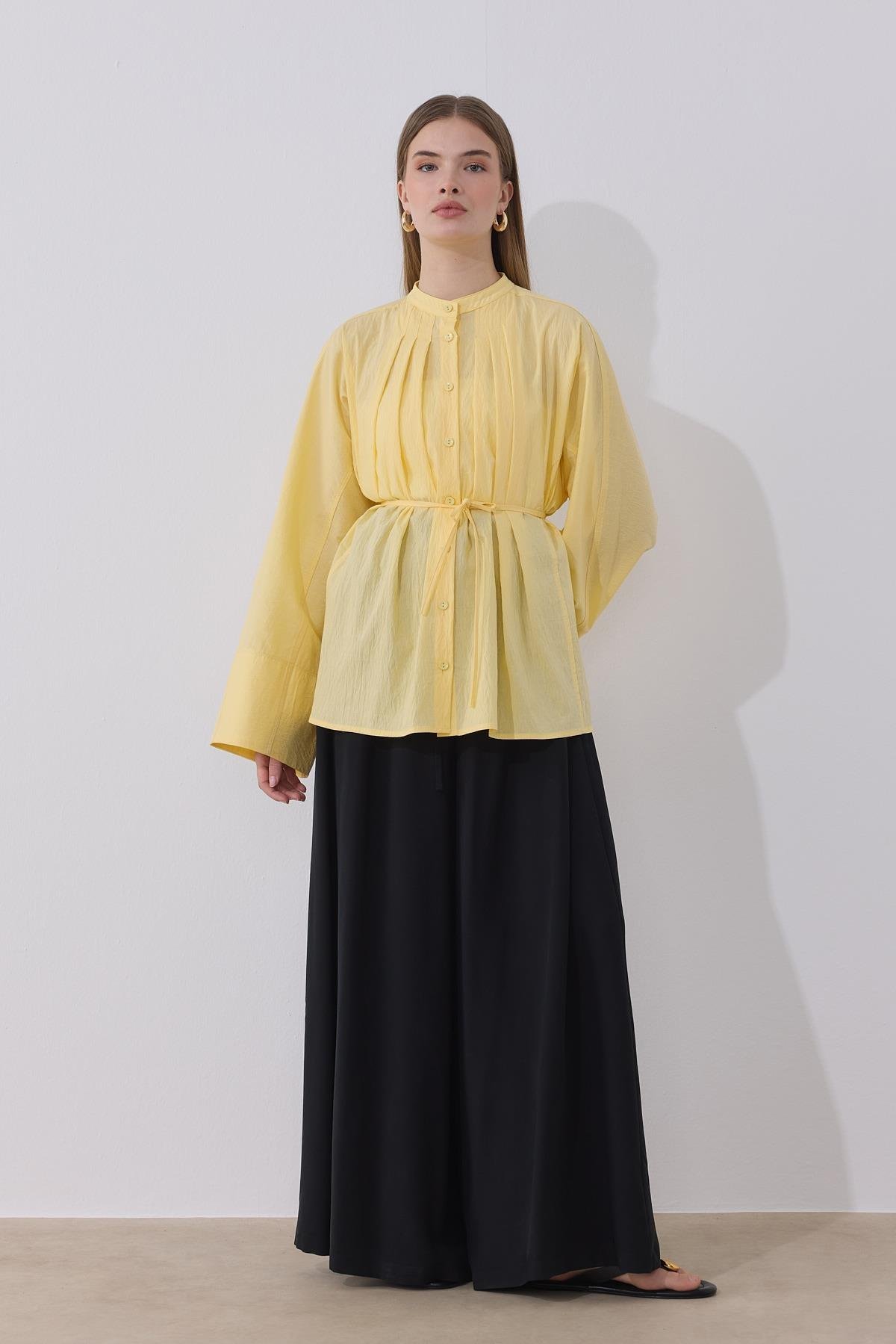 Yaka pile detayı, kuşaklı ve bol kollu gömlekler, canlı renklerle buluşuyor. Renk skalasıyla dikkat çeken River Gömlekler, gardırobunuzun vazgeçilmezi olmaya aday.