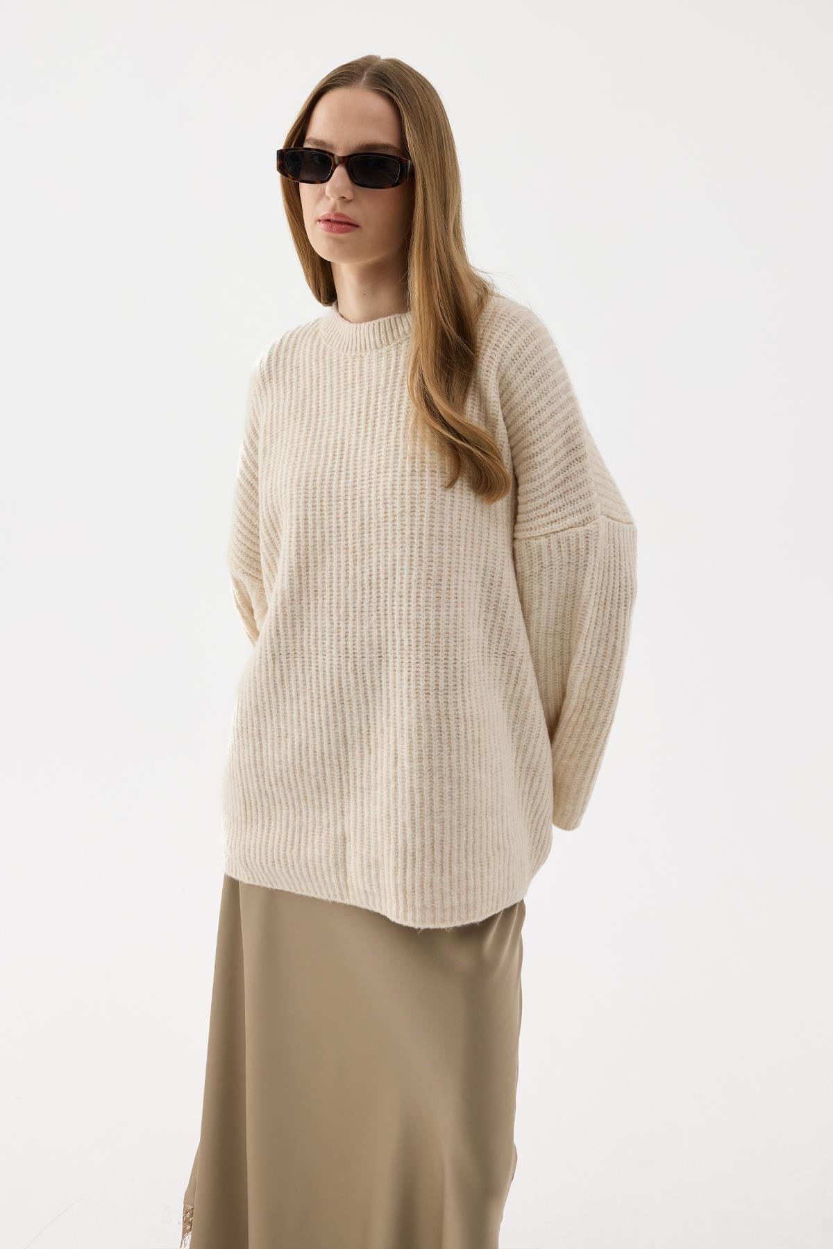 Bu kazağı, Raisa Saten Etek ile kombinleyerek zarif ve feminen bir stil oluşturabilirsiniz.