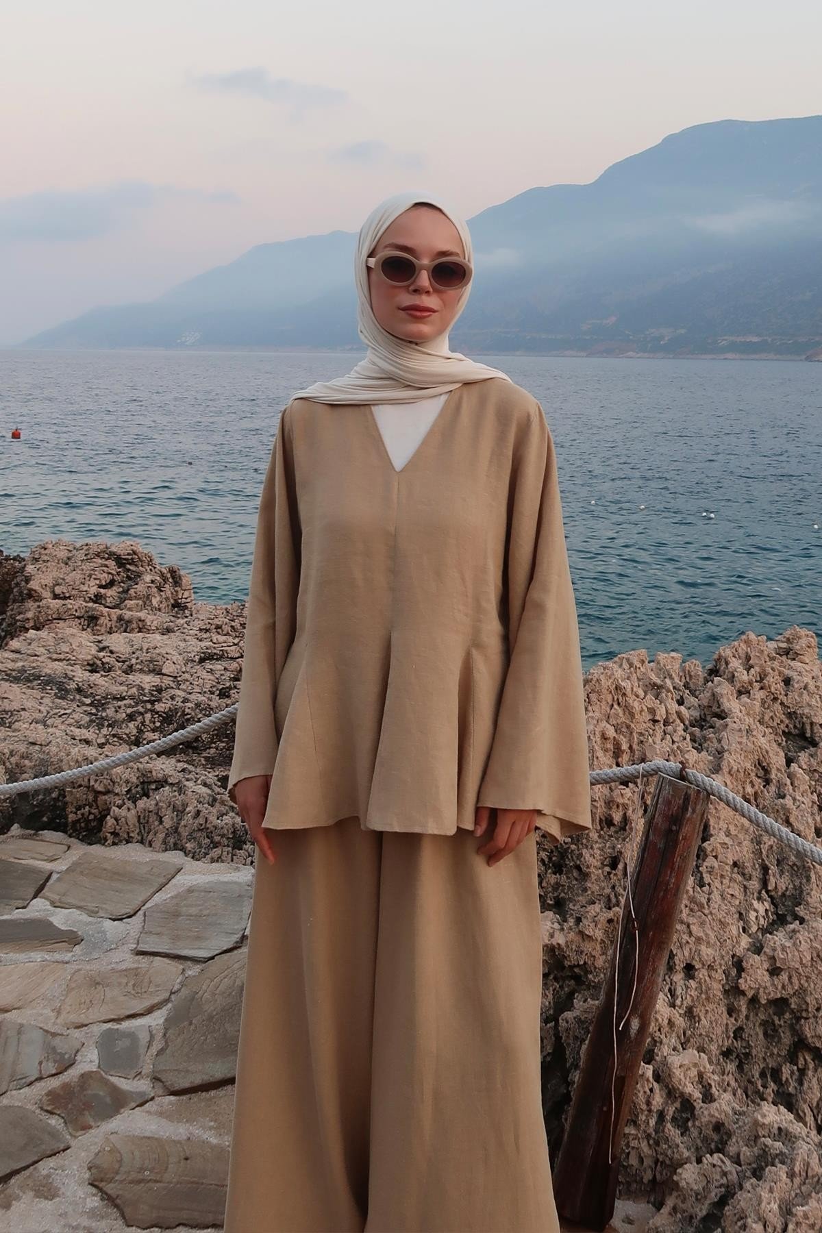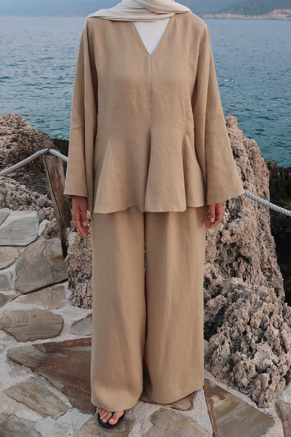 Leyal Bluz, zarif ve modern tasarımıyla her anınıza şıklık katacak bir bluzdur. %100 keten kumaşı ile hem hafif hem de rahat bir kullanım sunar. İnce ve zarif detaylarıyla, ister günlük kombinlerde ister özel davetlerde rahatlıkla tercih edebilirsiniz.Bu bluzu, Hanin Pantolon ile kombinleyerek zarif bir uyum yakalayabilirsiniz.