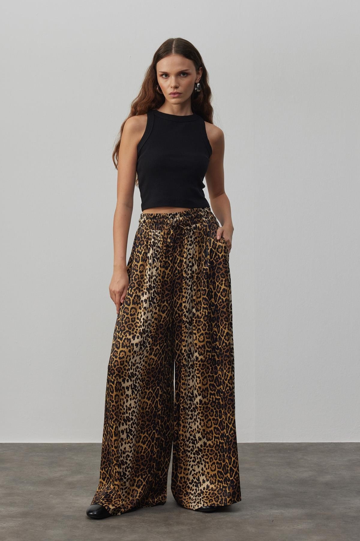 Gündüz/Gece gardırobunun en sevdiğin parçası olucak Leopar Saten Pantolon. Basic Tişört ve kazaklarla spor şıklığını yakalarken, gömlek ve ceketlerle gece şıklığında sana yardımcı olmaya hazır.