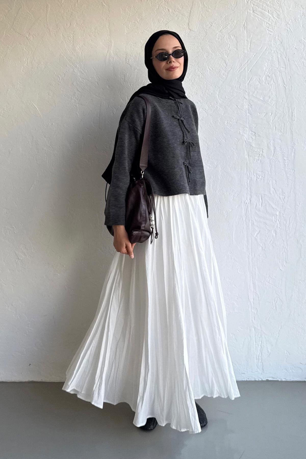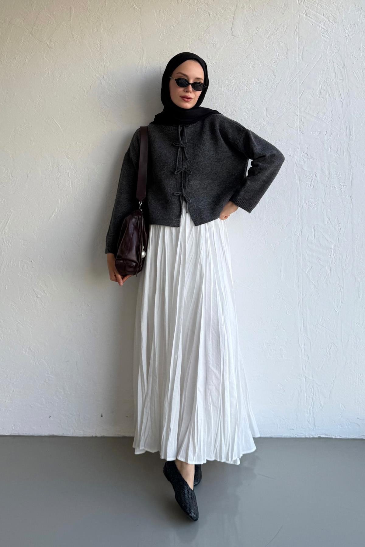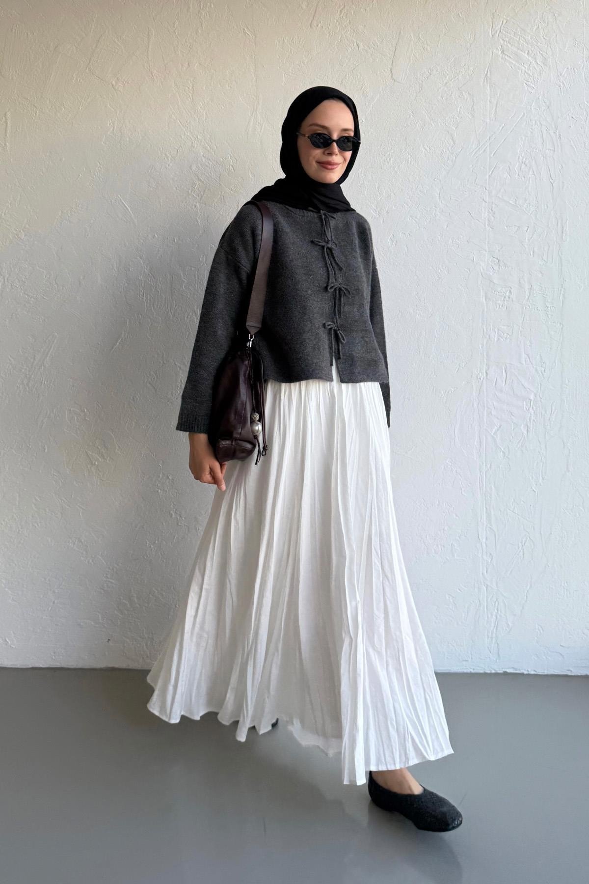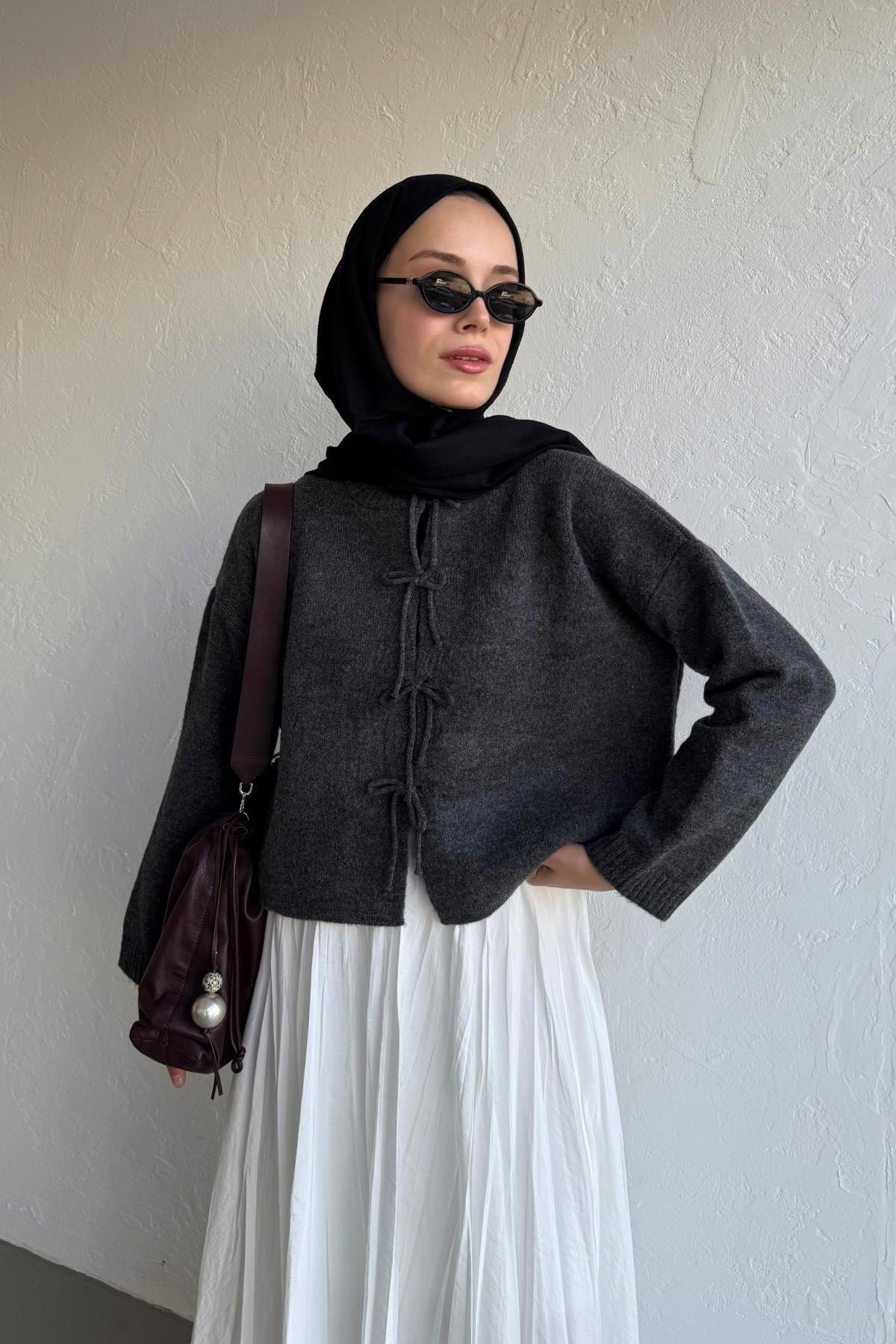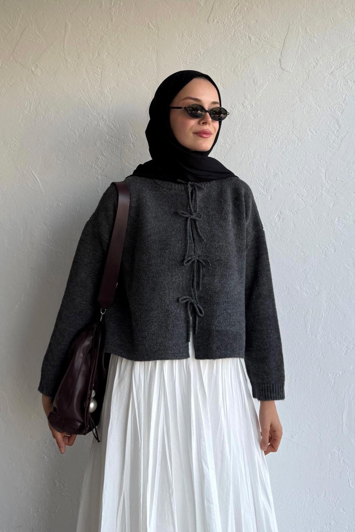 Bisiklet yakalı, yumuşak dokulu, zamansız Ribbon Triko Hırka.